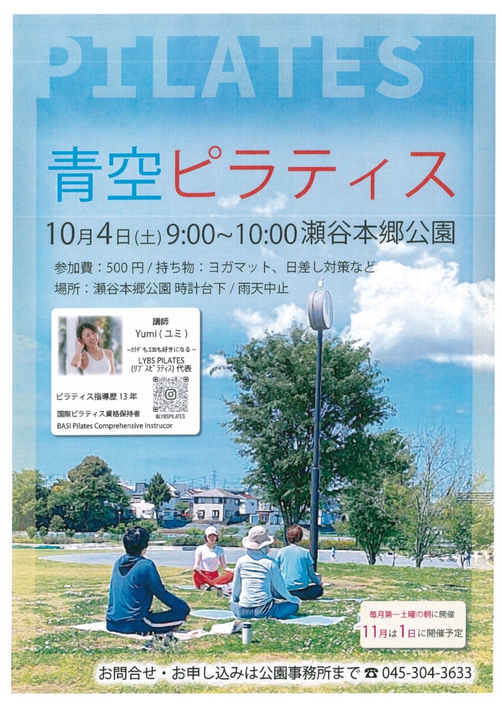 ホーム 公園だより ☆彡 10月の青空ピラティス開催 ☆彡